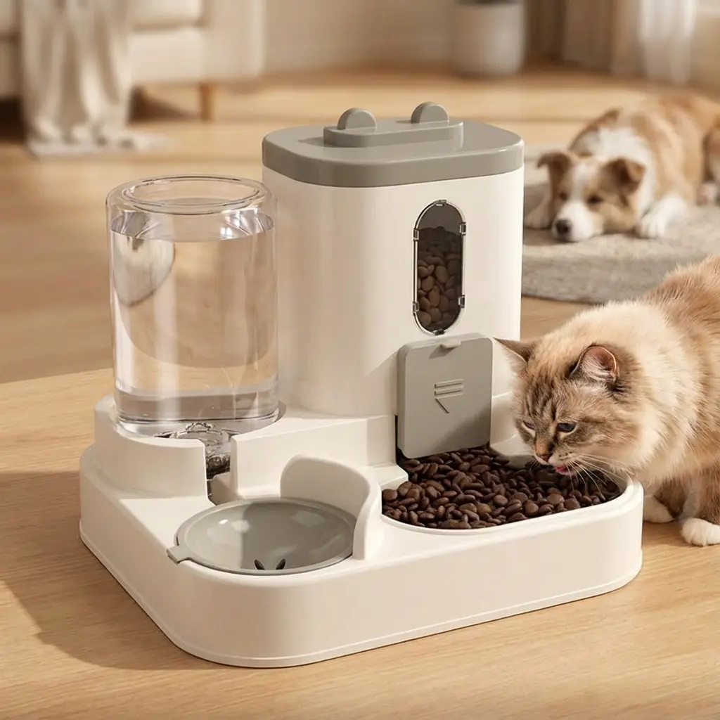 • 2-in-1 Efficiency: Combines a food bowl and a water dispenser in one compact, space-saving unit.