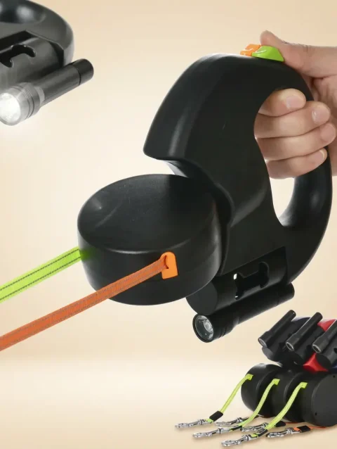 Dual Retractable Dog Leash with LED Flashlight (360° Tangle-Free)
